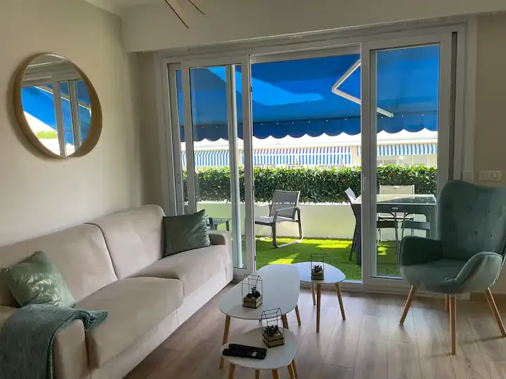 Recently renovated and perfectly equipped, it has : A large living room with 1 sofa bed (160x200) opening directly onto the terrace, a modern equipped kitchen.