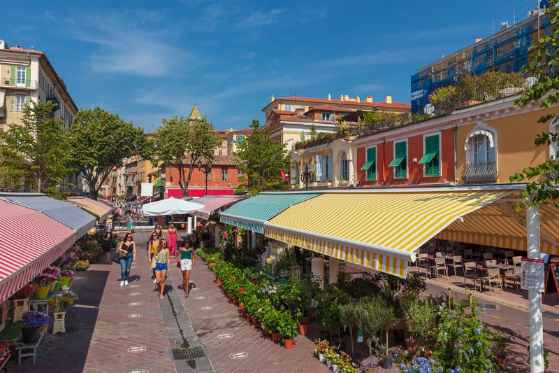 Fall under the spell of the authentic streets of Vieux-Nice and the Cours Saleya, one of the liveliest areas in Nice. 6 days a week, one of the 10 most beautiful markets in France takes place there: local and seasonal fruit, vegetables and flowers from local production compete in shape, scent and colour.