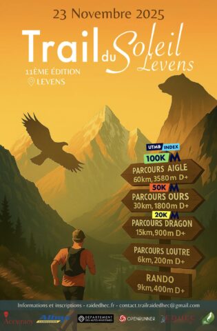 The Trail du Soleil Levens consists of four trails and one hike. You can participate with your family for a friendly outing, with friends, or alone to push yourself and give it your all.