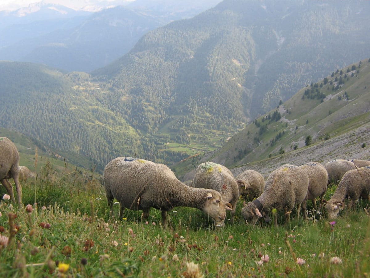 There is a particularity of the Alpes Maritimes mountains: here there are a lot of ewes and transhumance, the ancestral method which consists in taking the flocks up to the mountain pastures in summer, is still very much alive. The flocks arrive in June, first by truck, the final climb is done at the pace of the ewes. Putting the ewes to grass is always a great moment, the ewes are excited by the large expanses of meadows that are offered to them. The lambs and kids take the opportunity to run around and play until they fall over from exhaustion. The sound of bells and rattles enliven the pastures.
