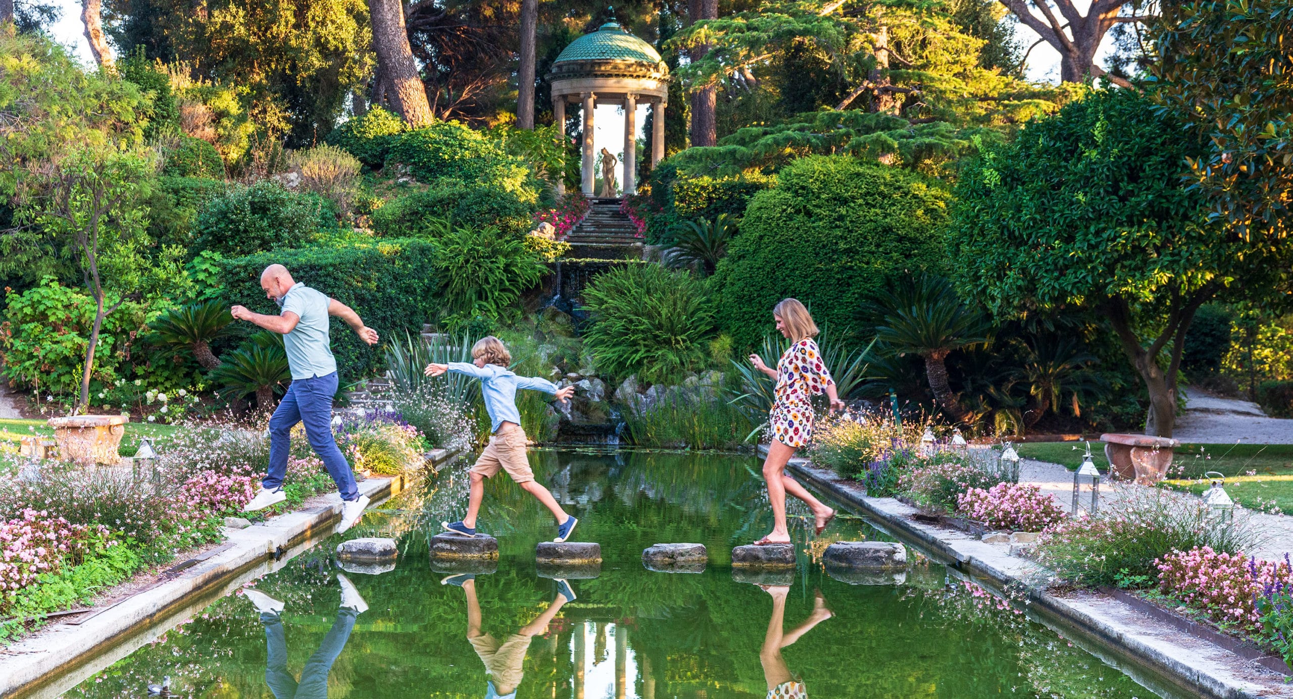 The superb villa built by Béatrice Ephrussi de Rothschild during the Belle Époque is surrounded by nine amazing gardens: Florentine, Spanish, French, exotic, lapidary, Japanese, Provençal, rose garden and finally the Sèvres garden. The 10,000 m2 French garden, punctuated by waterfalls and flowerbeds, combines the classicism of a canal, basins dominated by a Temple of Love and a waterfall with the symmetry of palm trees and bunches of agaves. A must-see! (cover photo: OTM NCA / J.Kelagopian).