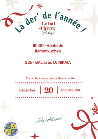 Winter Ball organised by the Roquebillière Festival Committee with food sales on the Village Square followed by a ball.v
