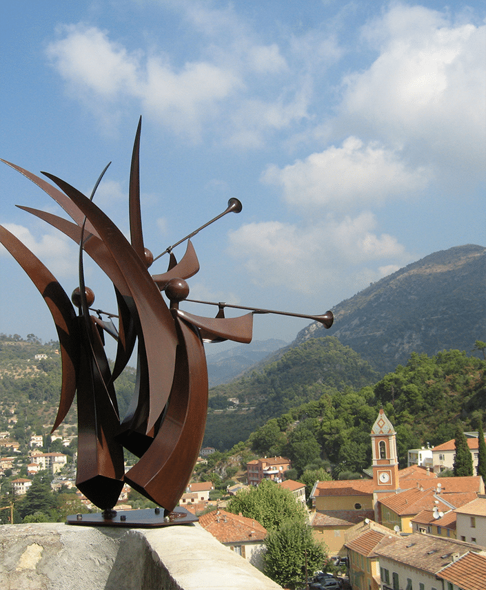 Levens, the fiefdom of the sculptor offers an artistic tour of his works through the village. The artist finds his inspiration in old tools and iron objects that he transforms, by assembling them, into characters or moving animals. His favourite themes are women, motherhood, couples, men, animals, fables and tales, mythology and religious subjects.