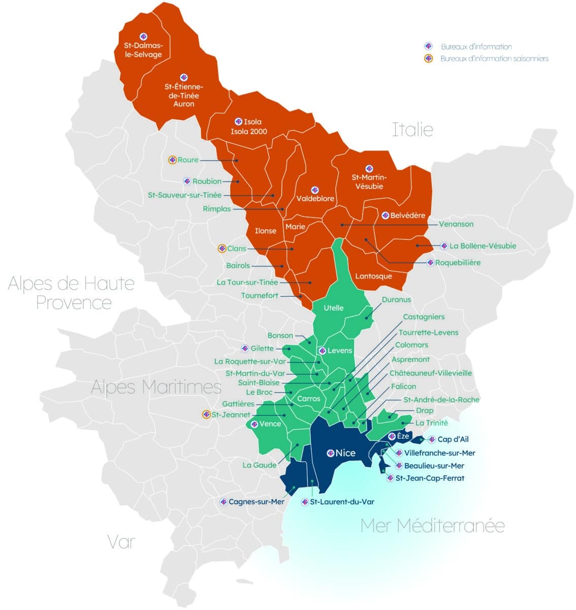 - Un territoire entre mer et montagnes, connecté au reste du monde par des réseaux routiers, ferroviaires, maritimes et aériens majeurs et partageant des frontières avec l’Italie et avec Monaco.