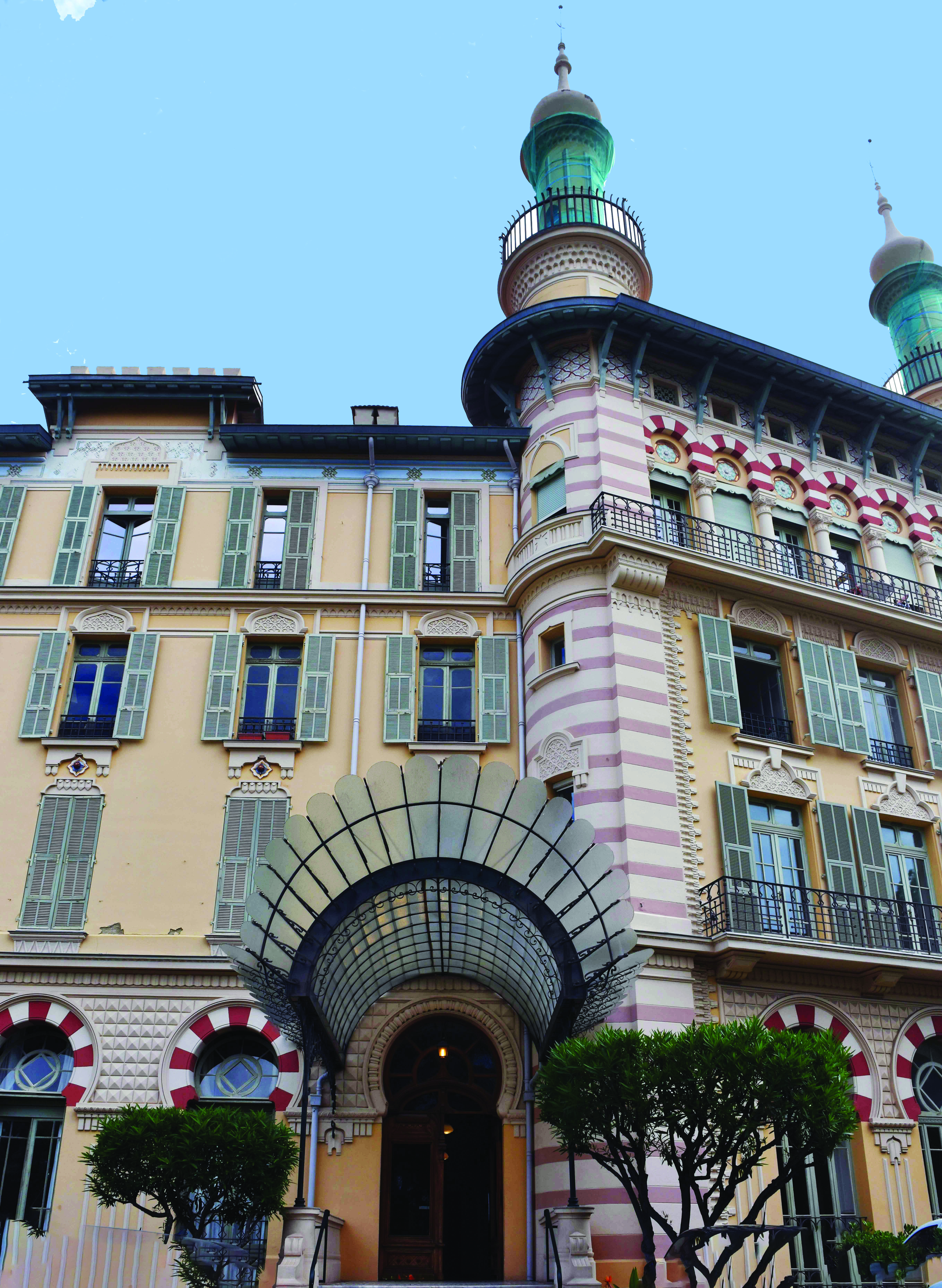 Ouvert en 1901, l’hôtel Alhambra, de l’architecte Jules Sioly, témoigne de la persistance, après 1900, du style oriental, très présent dès l’arrivée des premiers hivernants dans cette région dont la végétation est considérée comme exotique.