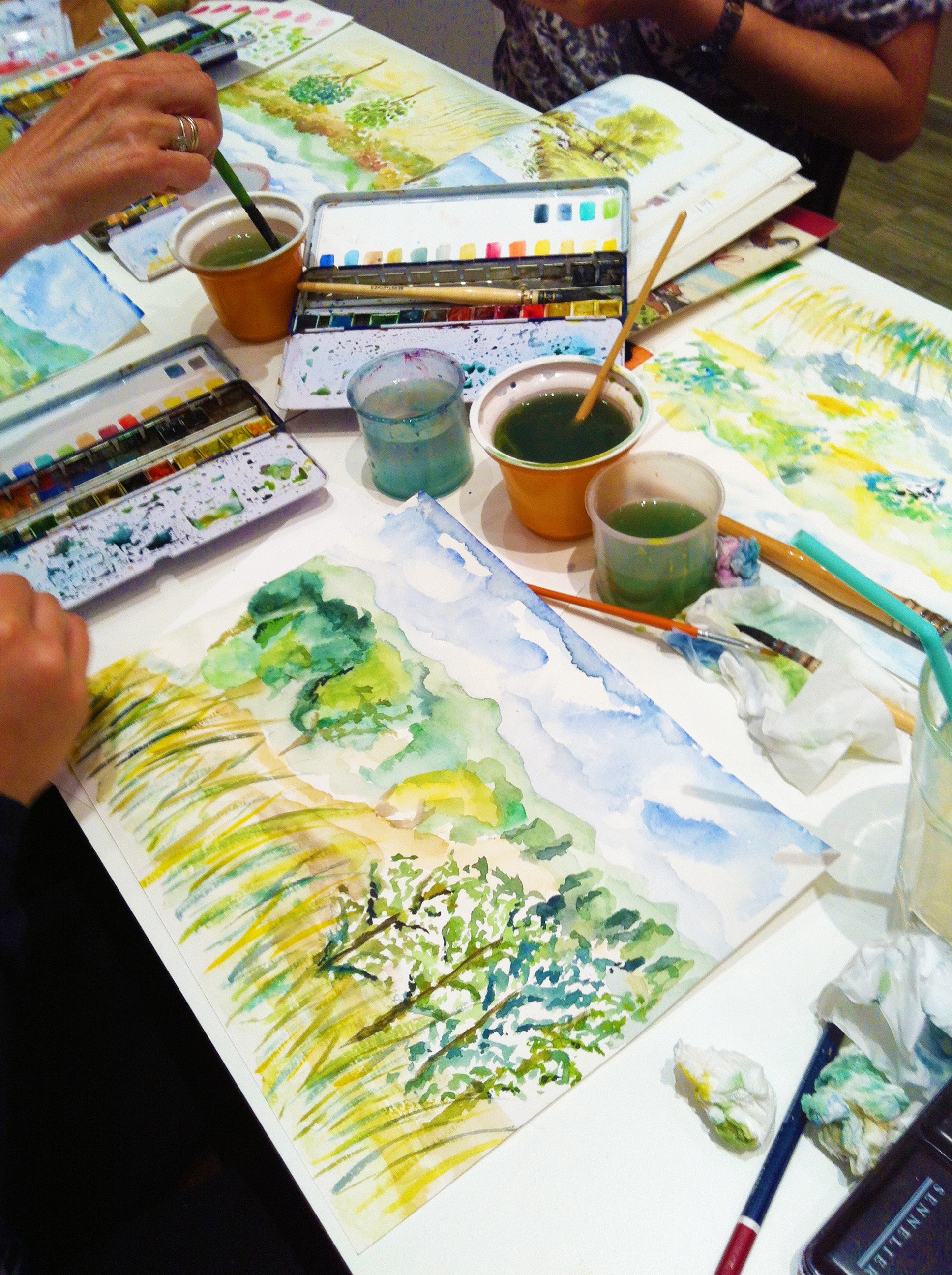 Atelier ludique en famille parents/enfants ou grands parents/enfants le mercredi. Atelier individuel vers l'expression de soi, Atelier en duo ou en couple, mini-stages matériel inclus pour nos touristes, ateliers paysages de Nice à l'aquarelle le lundi après midi soir et le mardi matin pour les touristes et amateurs d'art.