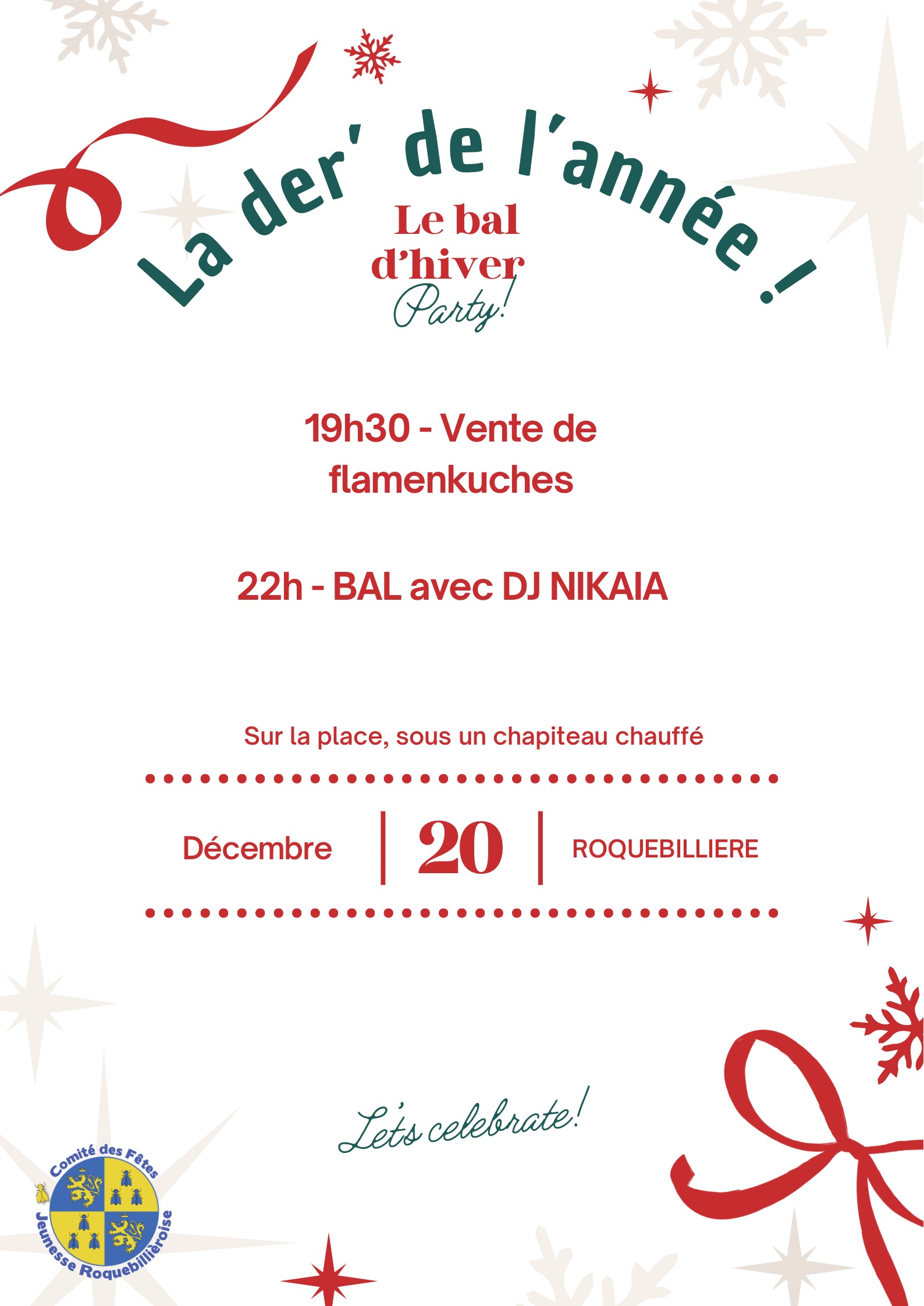 Bal d'hiver organisé par le Comité des fêtes de Roquebillière avec vente de nourriture sur la Place du Village suivi d'un bal