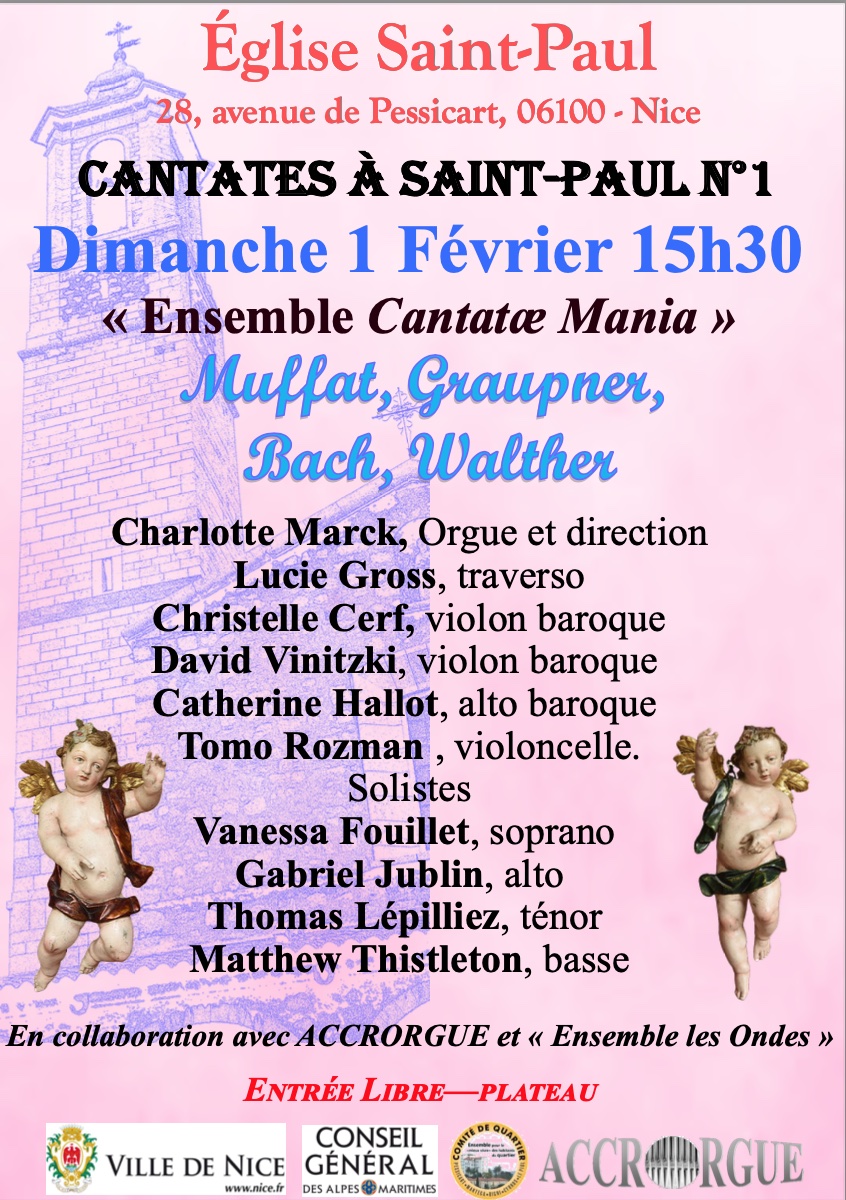 Initiées en 2024 par Charlotte Marck, professeur de clavecin au CRR de Nice, qui en est la directrice artistique, le cycle Cantates à Saint Paul a permit la découverte d'oeuvres vocales du répertoire baroque allemand peu jouées sous nos latitudes !