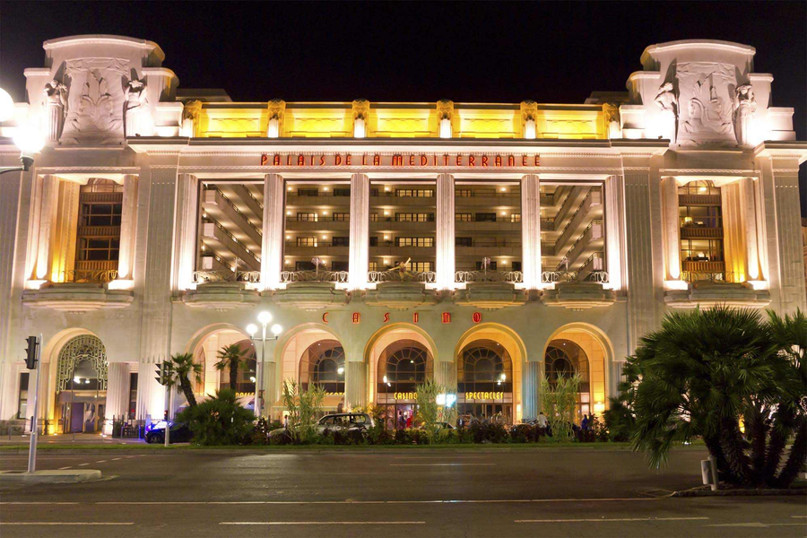Le Casino, situé au cœur du Palais de la Méditerranée, ne passe pas inaperçu avec sa façade classée au titre des monuments historiques.
