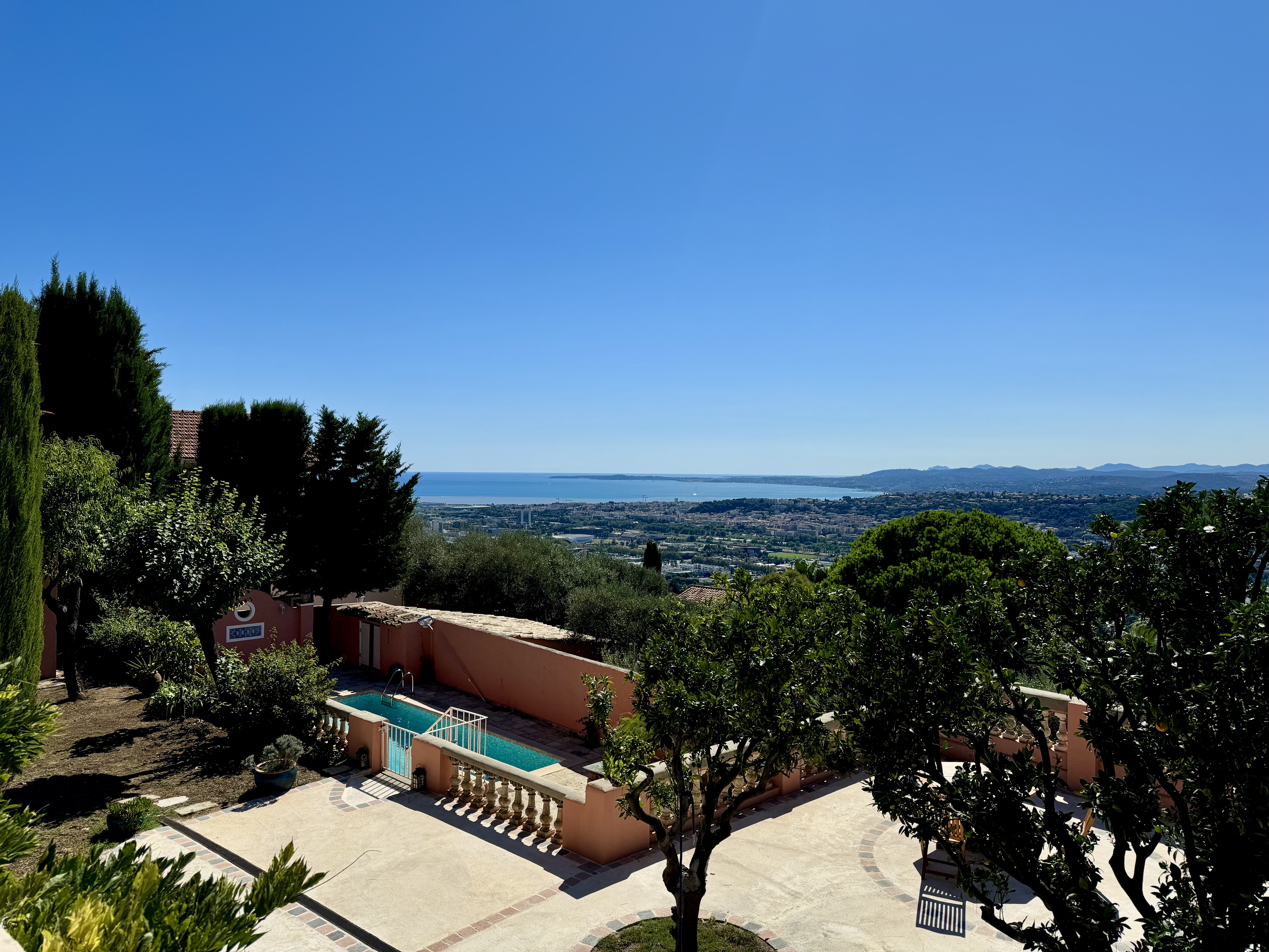 Nice Ouest : au sein d'une propriété 1920 avec vue magnifique sur le Cap d'Antibes, à 4 kms de l'aéroport international et du stade Allianz Riviéra, cette chambre d'hôtes, climatisée pour 3 personnes, dispose d'une piscine privative et d'un balcon.