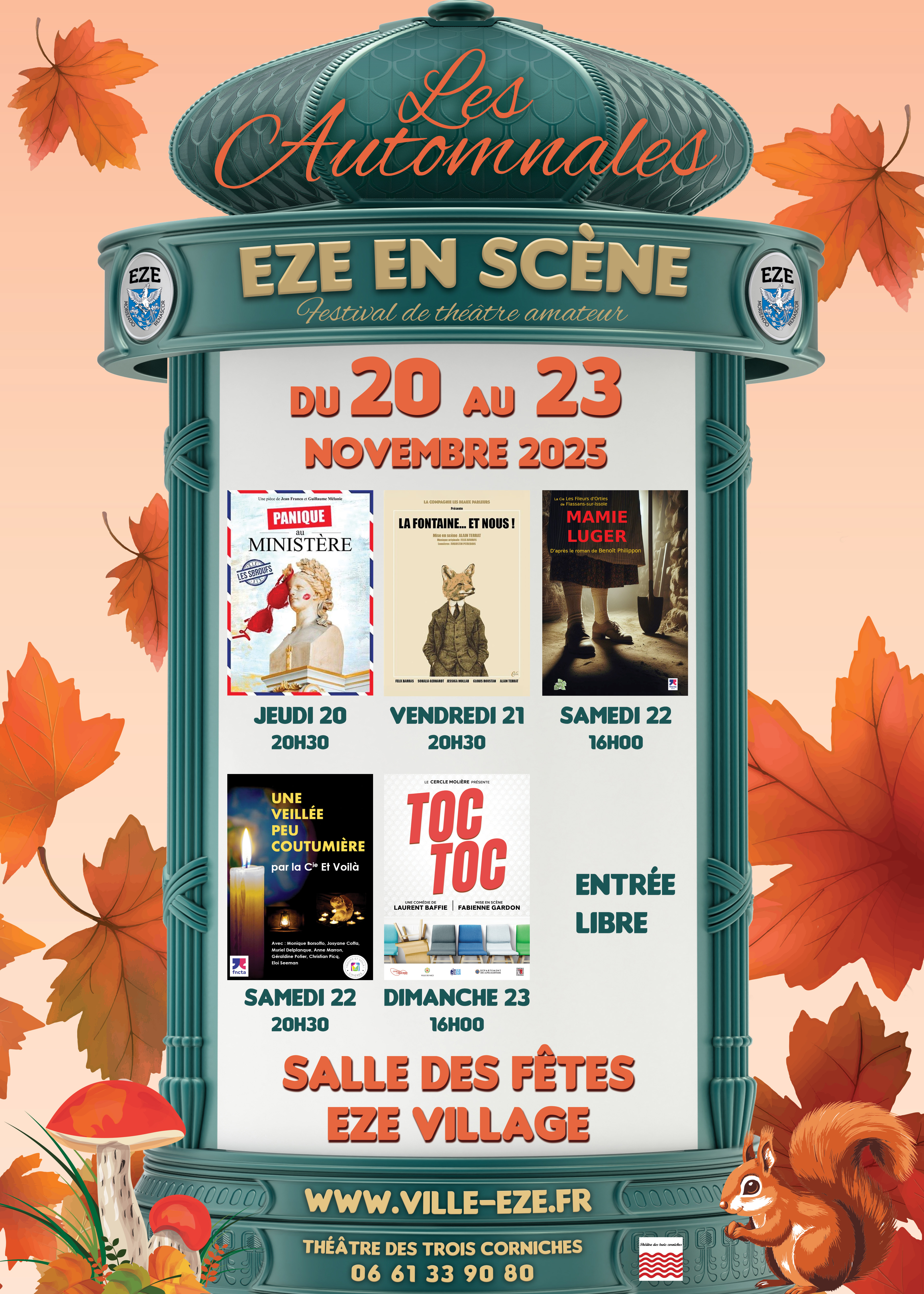 Eze en scène propose une palette de pièces de théâtres de la comédie à la comédie dramatique.