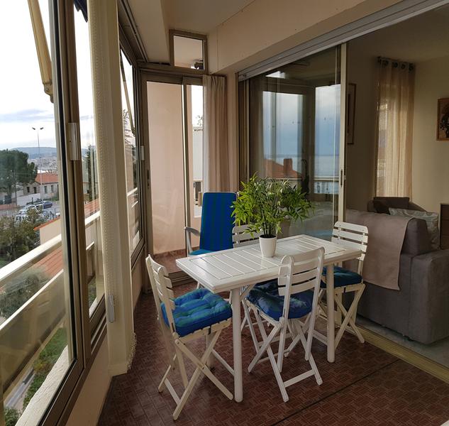 A 50 mètres de la plage et du port du Cros, résidence calme et agréable, appartement au 3éme étage, avec terrasse et balcon exposition Sud /Sud/ Ouest, vue mer et Cap d’ Antibes. Types de couchage : 1 canapé lit 2 places et 1 lit double en 160