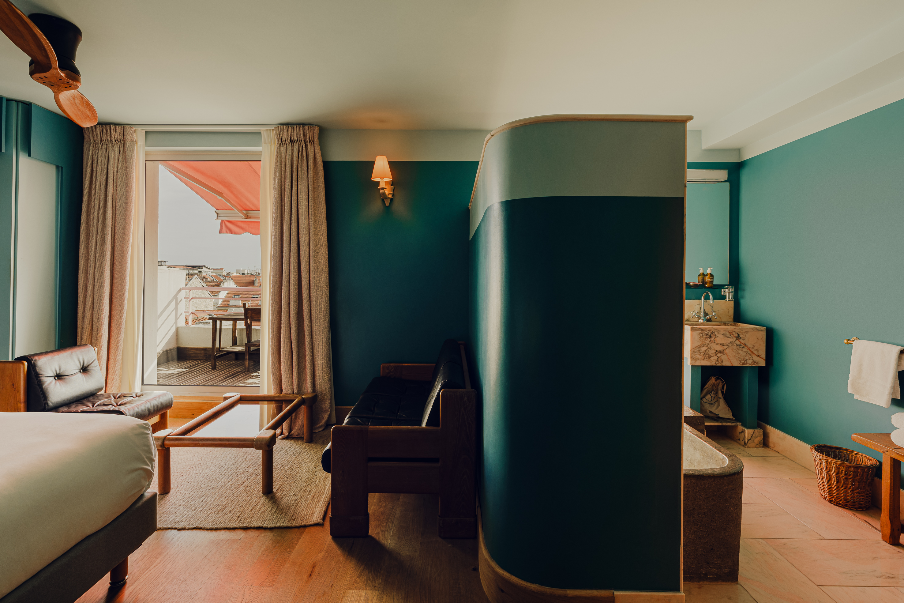 Les fondateurs marchent au coup de cœur et le mobilier est déniché au fil de l’eau. Tout se mélange : espaces, matériaux, textiles, objets collectionnés, bouquins. Chaque chambre est unique et s’organise dans le souci du détail : couleurs vives, literie de palace, éclairage tamisé, salle de bain en marbre rose et robinetterie italienne…