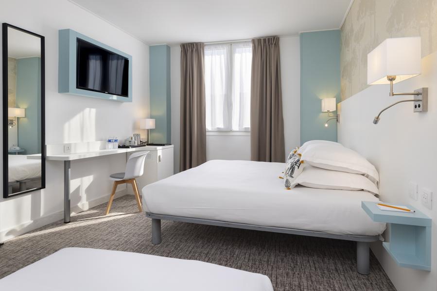 L'hôtel, rénové en 2021, propose 64 chambres de grand confort climatisées, insonorisées et de salles de bain équipées. A disposition également un rooftop pour un petit déjeuner ou un rafraîchissement à tout moment de la journée. Toute l' équipe est disponible, afin de répondre à vos demandes et vous faire passer un agréable séjour.