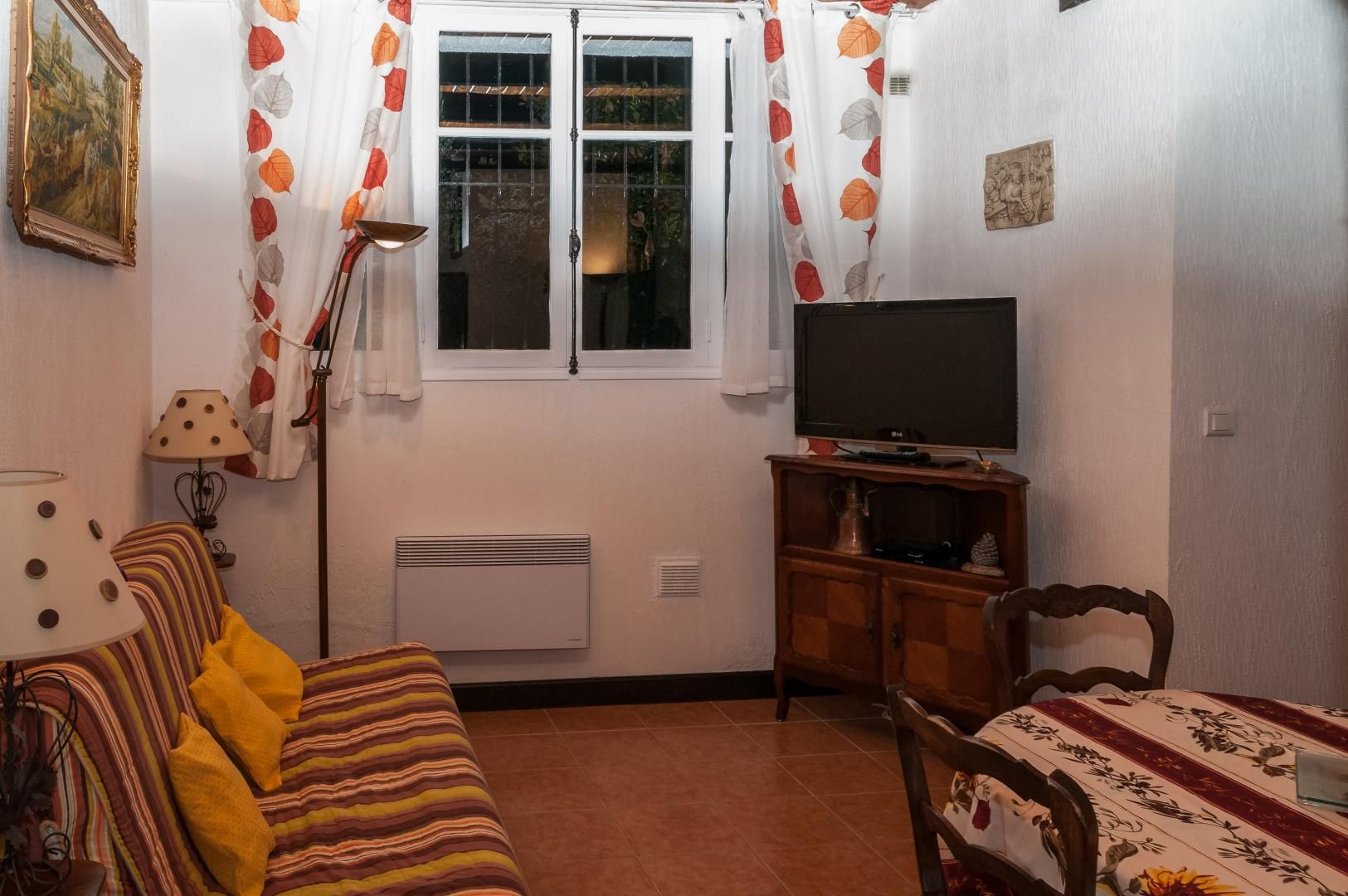 Entrée par jardinet/terrasse privatif équipé : superficie 32 m². - Séjour comprenant un convertible 2 pers. 140*190, - Coin-cuisine. - 1 chambre (1 lit 2 pers. 140*190) ouvrant sur jardinet/terrasse. - Salle d'eau avec WC attenant. Vaste terrain plat commun de 8000 m2 comportant une chênaie ombragée - équipé terrasse - barbecue - jeu de boules. Parking à l'intérieur de la propriété. Chauffage électrique. Charges incluses. Taxe de séjour en supplément. Forfait ménage et location Kit draps & linge maison sur demande.