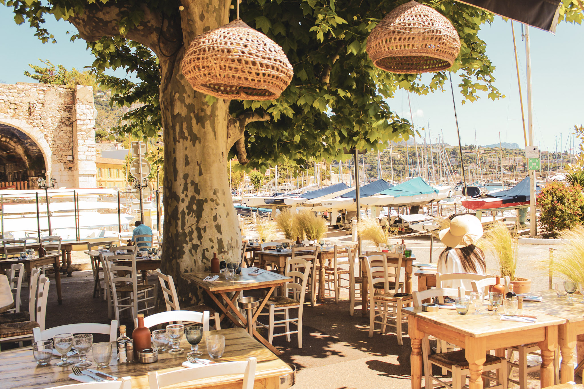 La Corderie, un restaurant méditerranéen sur le port de la Darse à Villefranche-sur-Mer, dans l’un des derniers recoins authentiques de la Côte d’Azur. L’imposant platane qui recouvre la terrasse ensoleillée du restaurant est un appel à la fraîcheur, un instantané qui nous rappelle les vacances.