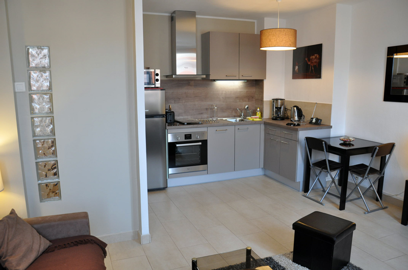 Un charmant studio contemporain et design, très bien placé et très bien équipé, au 5ème étage dans un immeuble de 6 étages, tout proche du port.