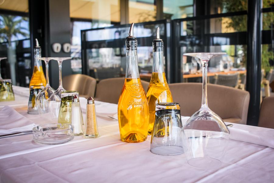 Sur le port de plaisance, avec terrasse ensoleillée face à la mer.