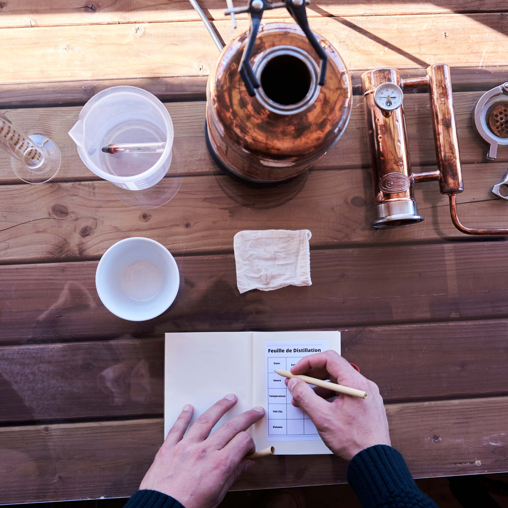 Vient le moment de la distillation du gin dans un alambic en cuivre individuel. L’atelier permet même de créer sa propre étiquette personnalisée pour habiller la bouteille de Gin ainsi fabriquée. Il ne vous reste plus qu’à diluer votre gin et le mettre en bouteille. Vous rentrez chez vous avec votre bouteille personnalisée.