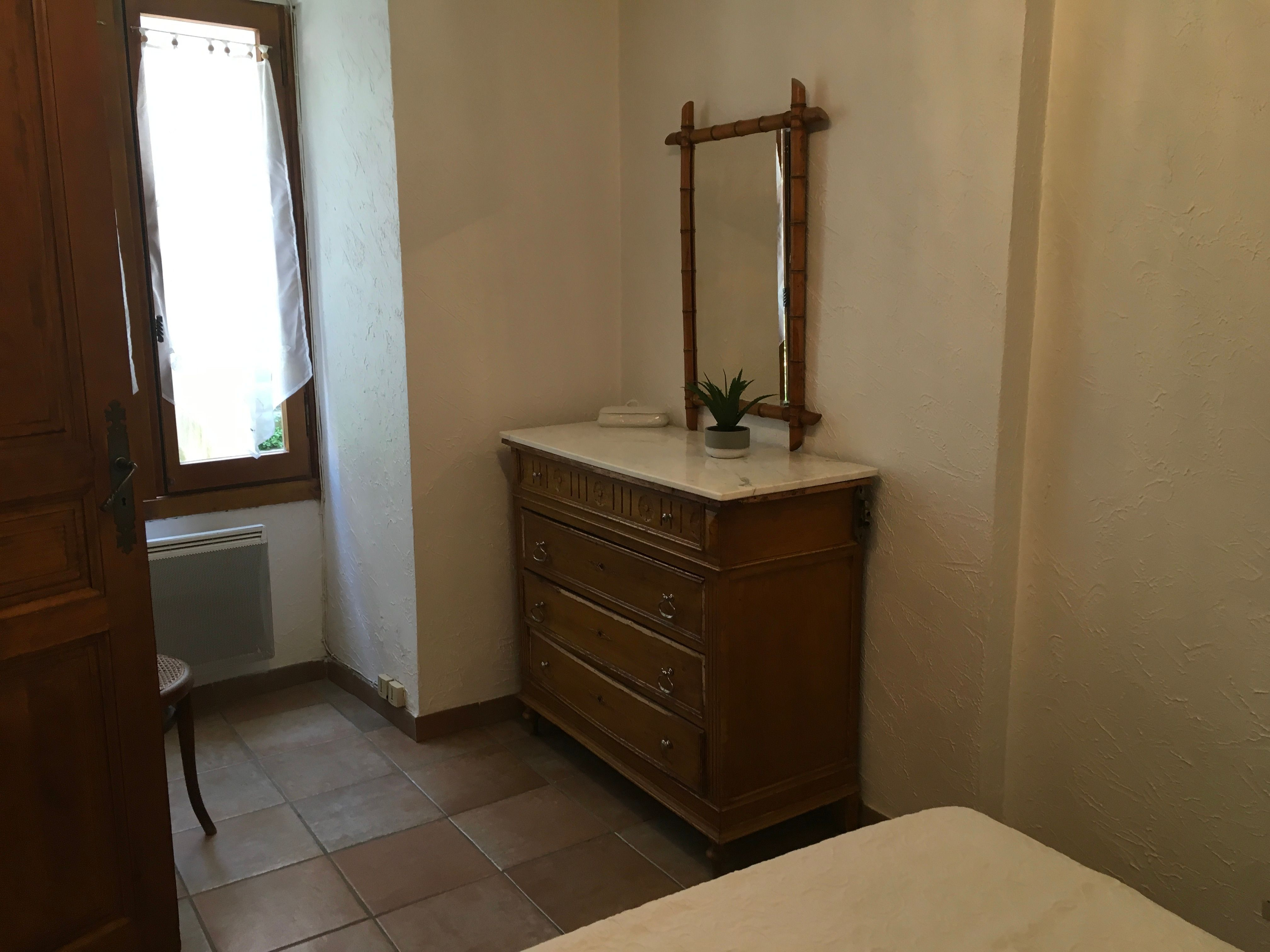 F2 traversant situé en bordure du village, au 1er étage, ensoleillé et orienté plein sud, balcon 3 m² avec vue sur montagnes et vallée.