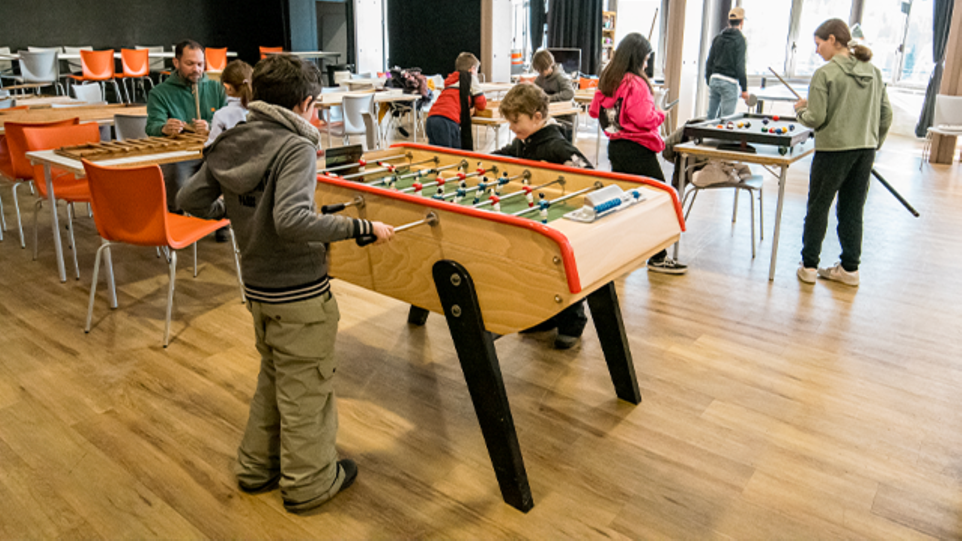 On y trouve des consoles de jeux, des livres, des jeux en bois, une table de billard, de ping-pong et un baby-foot.