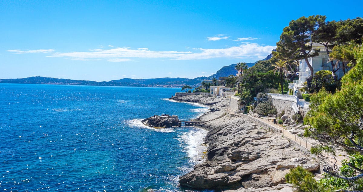 Una spiaggia di 2 km, situata a Eze-bord de Mer, offre una vista eccezionale sul Cap Estel e la penisola di Saint-Jean-Cap-Ferrat.