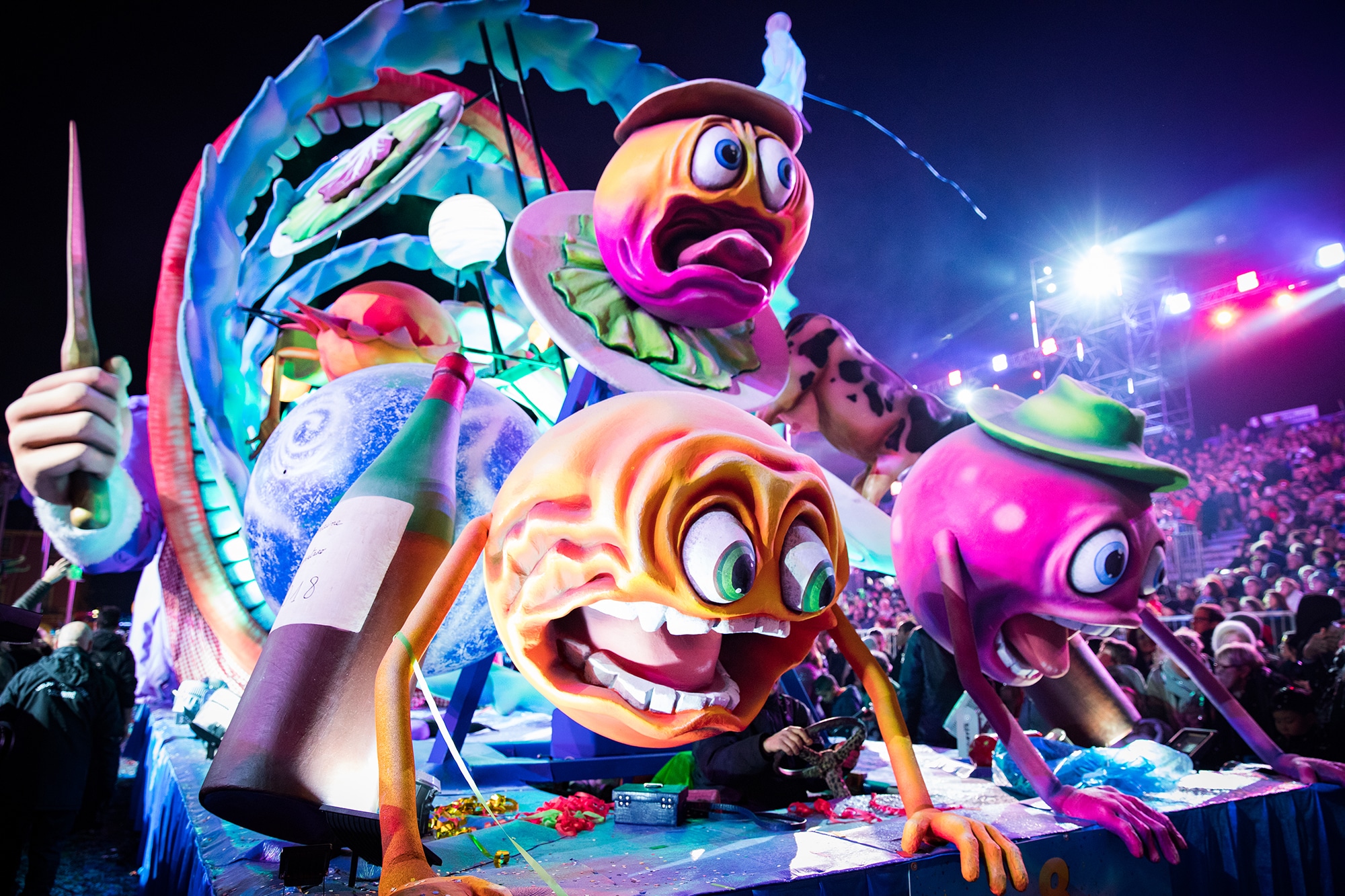 Infatti, per ralizzare un carro allegorico, bisogna prima di tutto essere appassionati e inventivi e padroneggiare l’arte di trasformare in volume l’illustrazione disegnata dagli imagiers. Bisogna poi occuparsi della saldatura dei telai metallici e creare un meccanismo idraulico o meccanico per animare il carro. È inoltre necessario saper scolpire il polistirolo con un cutter o una motosega, incollare strati di carta, applicare resina poliestere, cucire metri e metri di tessuto, dipingere con un aerografo, una bomboletta spray e un pennello per dare vita ai personaggi. È anche necessario creare il sistema di illuminazione che, durante le sfilate notturne, darà ai carri un aspetto meraviglioso.