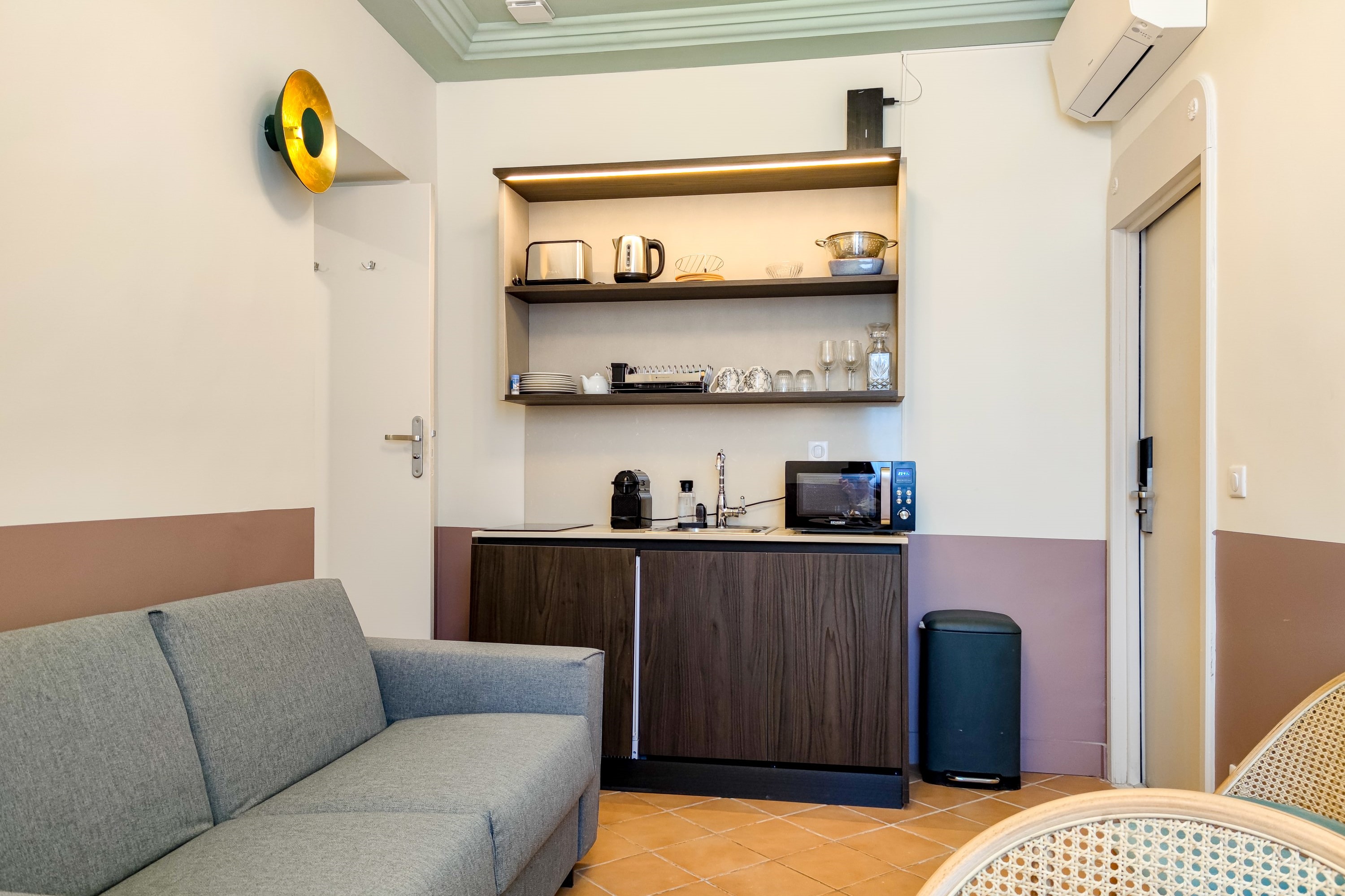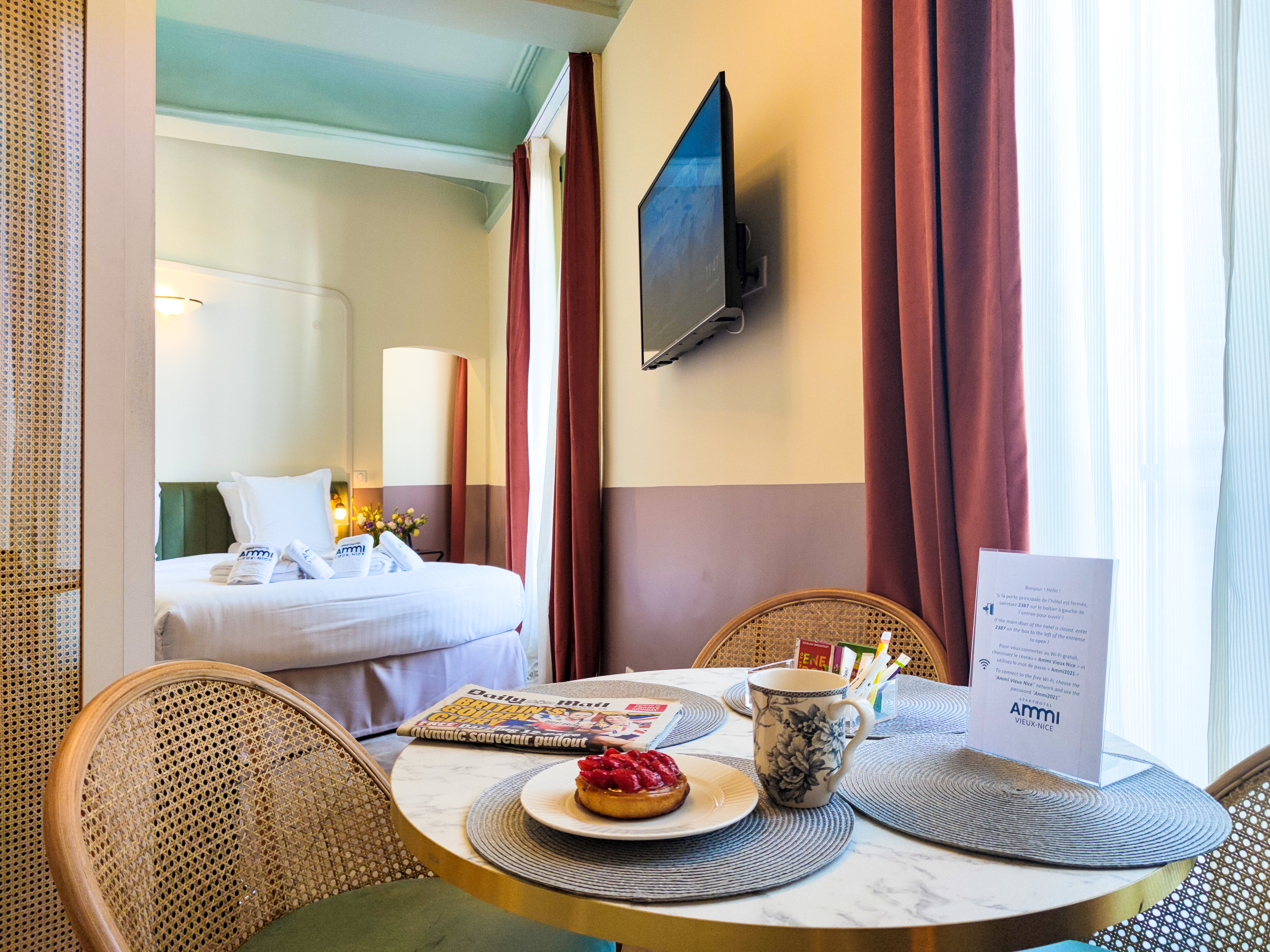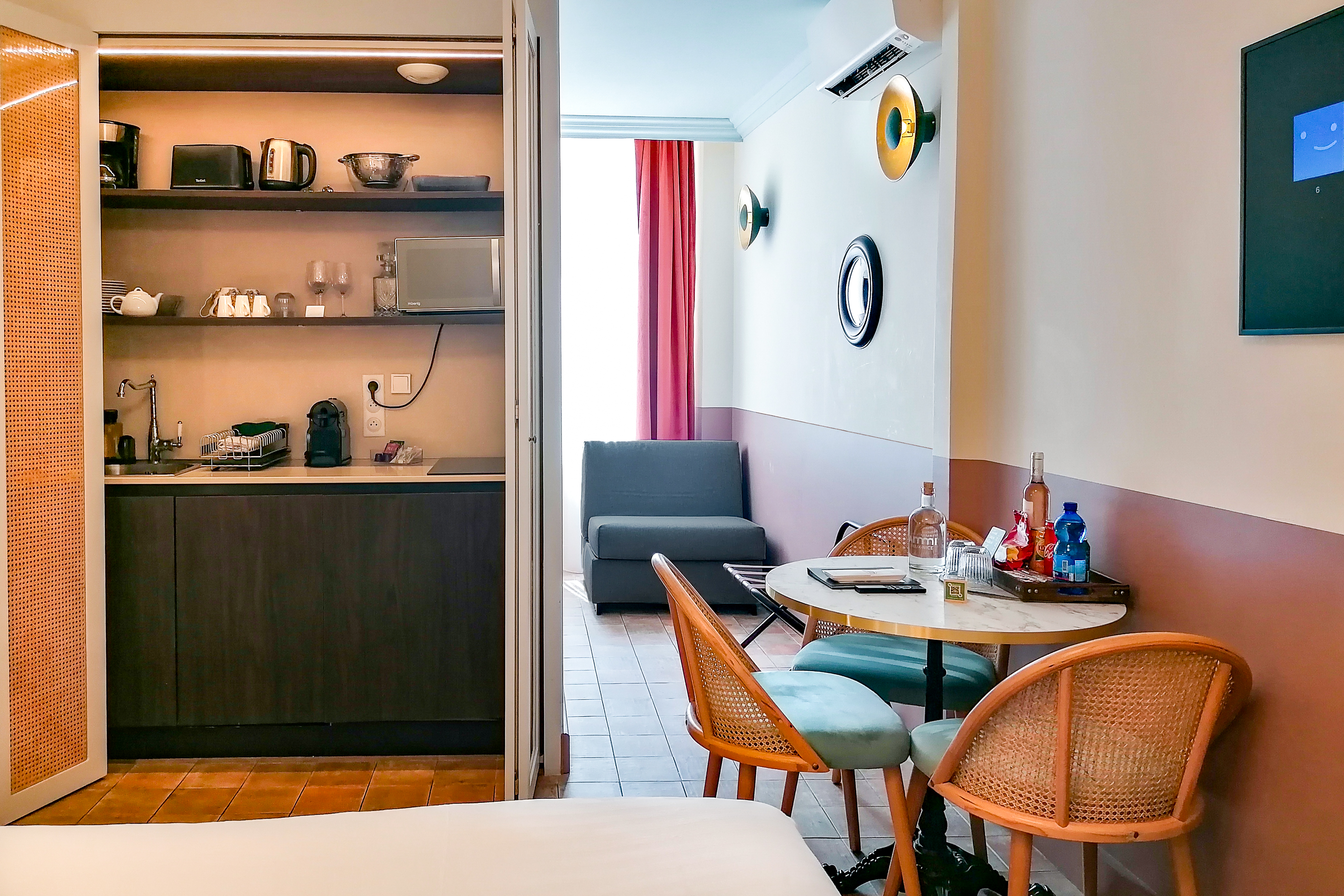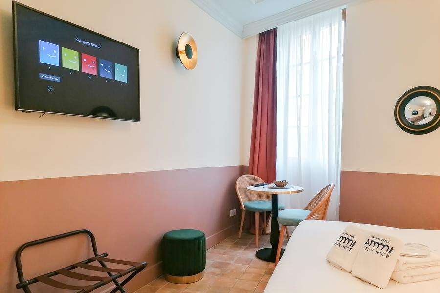 Godetevi il meglio dell'hotel con i suoi servizi professionali di qualità 24 ore su 24, 7 giorni su 7, ma anche l'indipendenza e il comfort di un monolocale. Appartamenti da 15 a 30 m², la maggior parte con balcone, biancheria da letto eccellente, cucina completamente attrezzata, smart TV con accesso a Netflix, ampie docce, wifi. Un team amichevole e reattivo vi garantisce un soggiorno eccellente nel cuore del centro di Nizza.