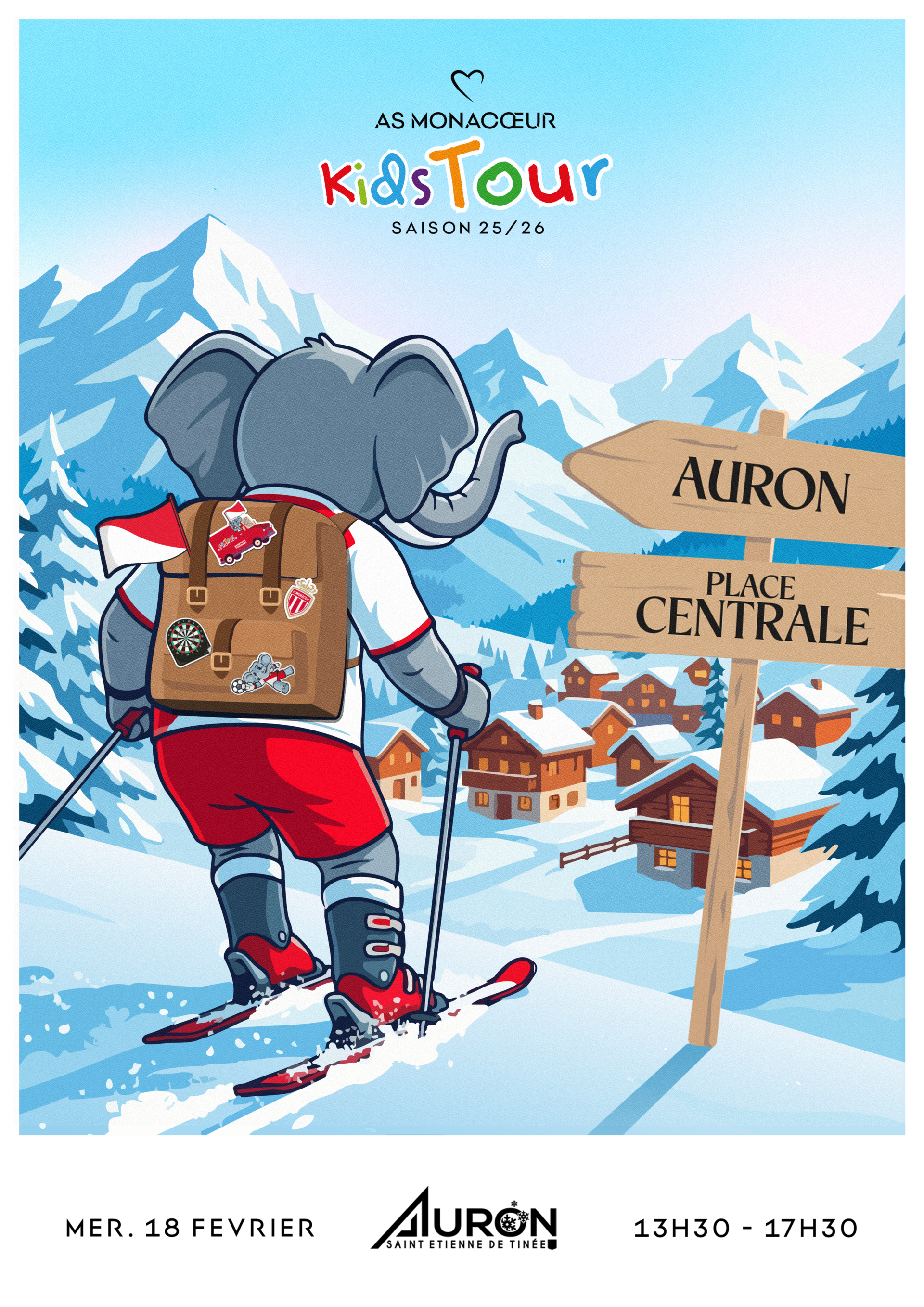 L’As Monaco Kids Tour est de retour cette année le samedi 18 février de 13h30 à 17h30 sur la place centrale d’Auron.