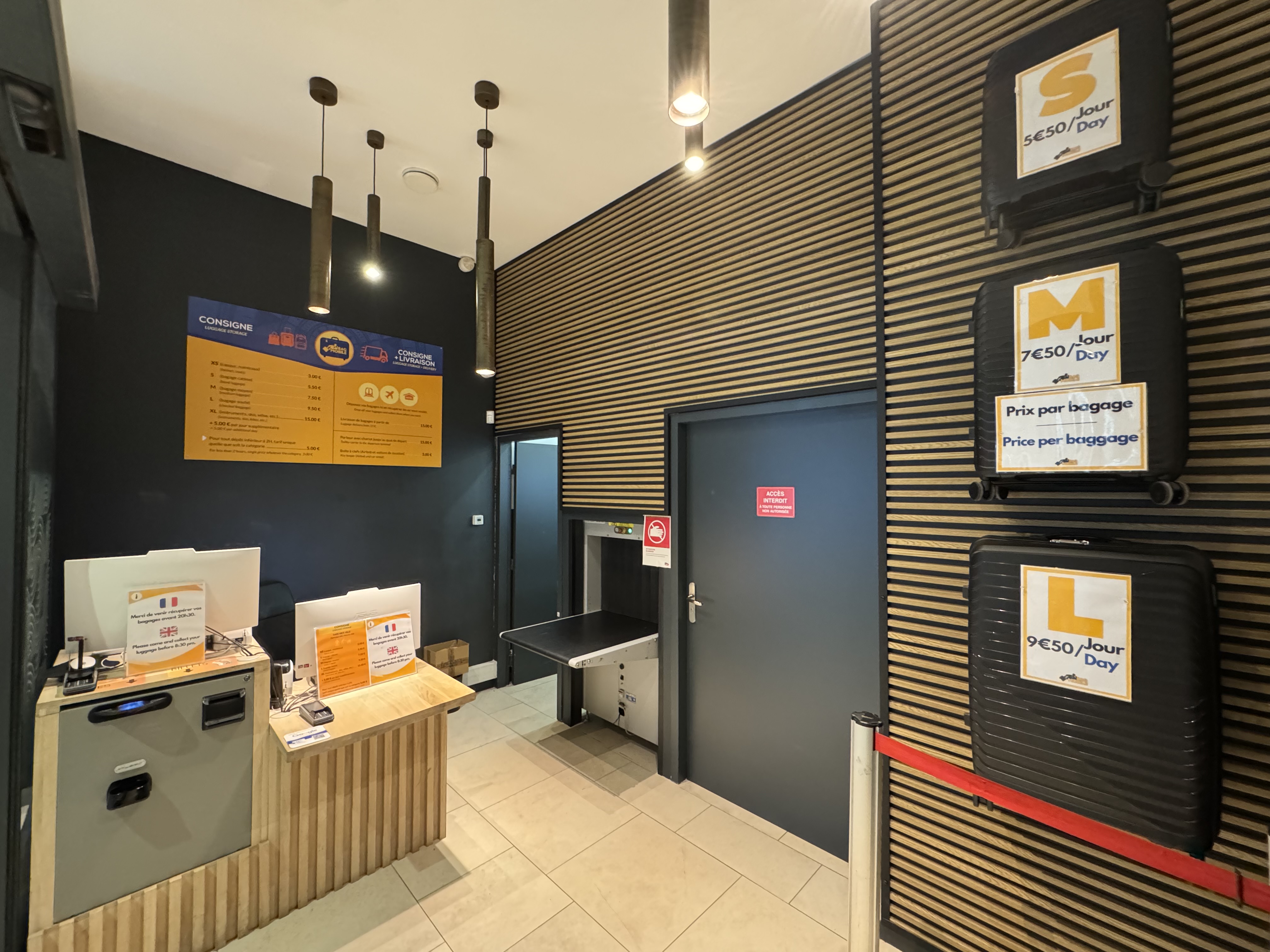 Aperto tutti i giorni dalle 8:15 alle 21:00, festivi inclusi, il deposito accoglie i visitatori con o senza prenotazione. Gestisce tutti i tipi di bagagli, così come chiavi, biciclette e altri oggetti ingombranti.