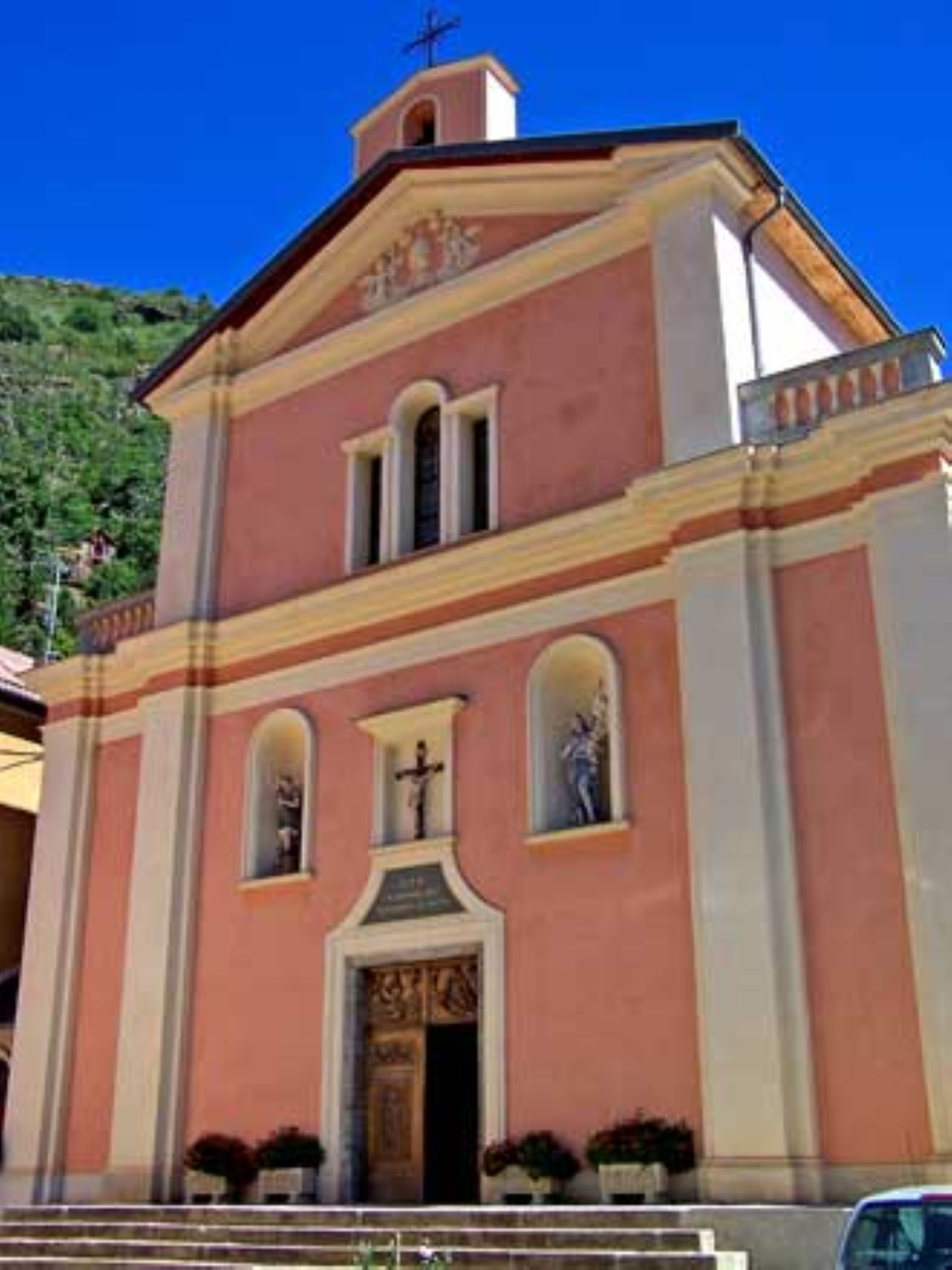 La prima cappella a sinistra dell'entrata ha una rara rappresentazione scolpita della crocifissione, ambientata in un paesaggio dipinto. Le porte sono state scolpite intorno al 1870 da Pierre Vial, un artigiano locale noto per diverse porte e una fontana nel villaggio; esse evocano San Pietro e Santa Maria Maddalena, patrono della comunità.