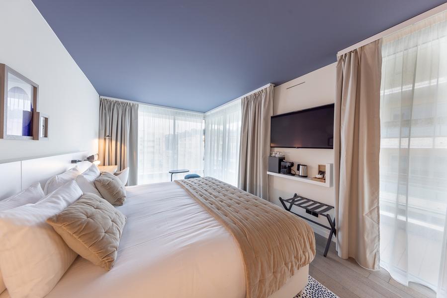 Il nostro hotel boutique dispone di 87 camere, tra cui 7 suite. Con il loro design elegante e moderno, sono il luogo ideale per fare il pieno di energia. La maggior parte offre una vista mozzafiato sulle Alpi meridionali, sul Castello-Museo Grimaldi e sul Museo Renoir.
