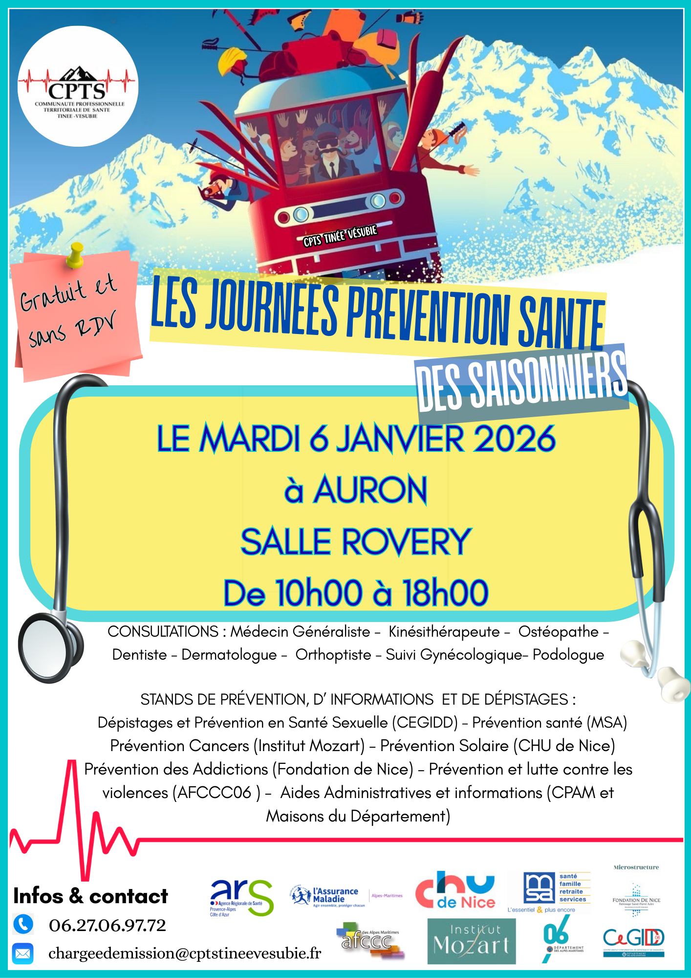 Consultations médicales, paramédicales gratuites et sans rendez-vous pour le personnel saisonnier à partir de 10h..