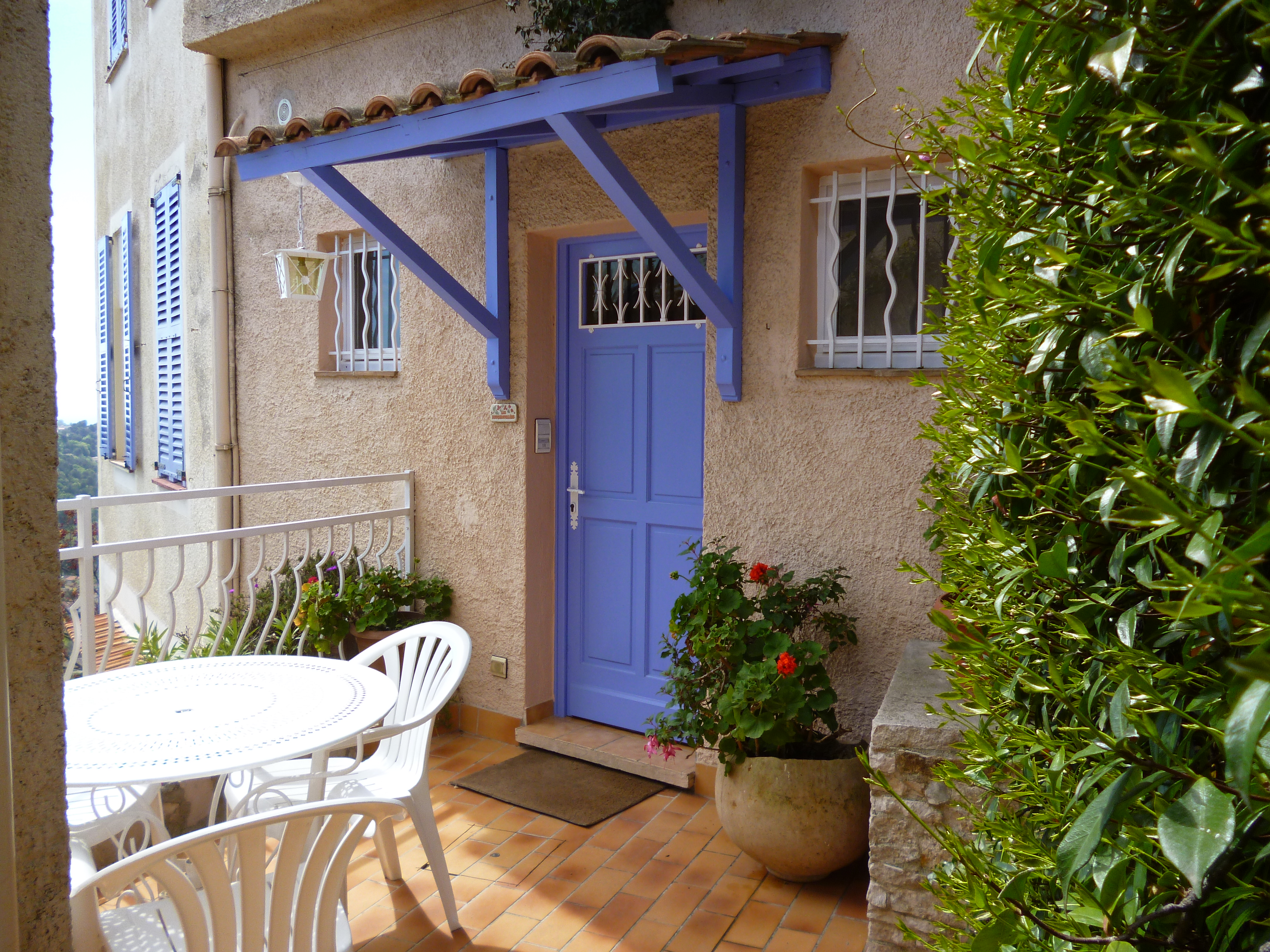 il se compose d'une terrasse extérieure en arrivant avec un salon de jardin, (une dizaine de marches pour arriver sur la terrasse)
