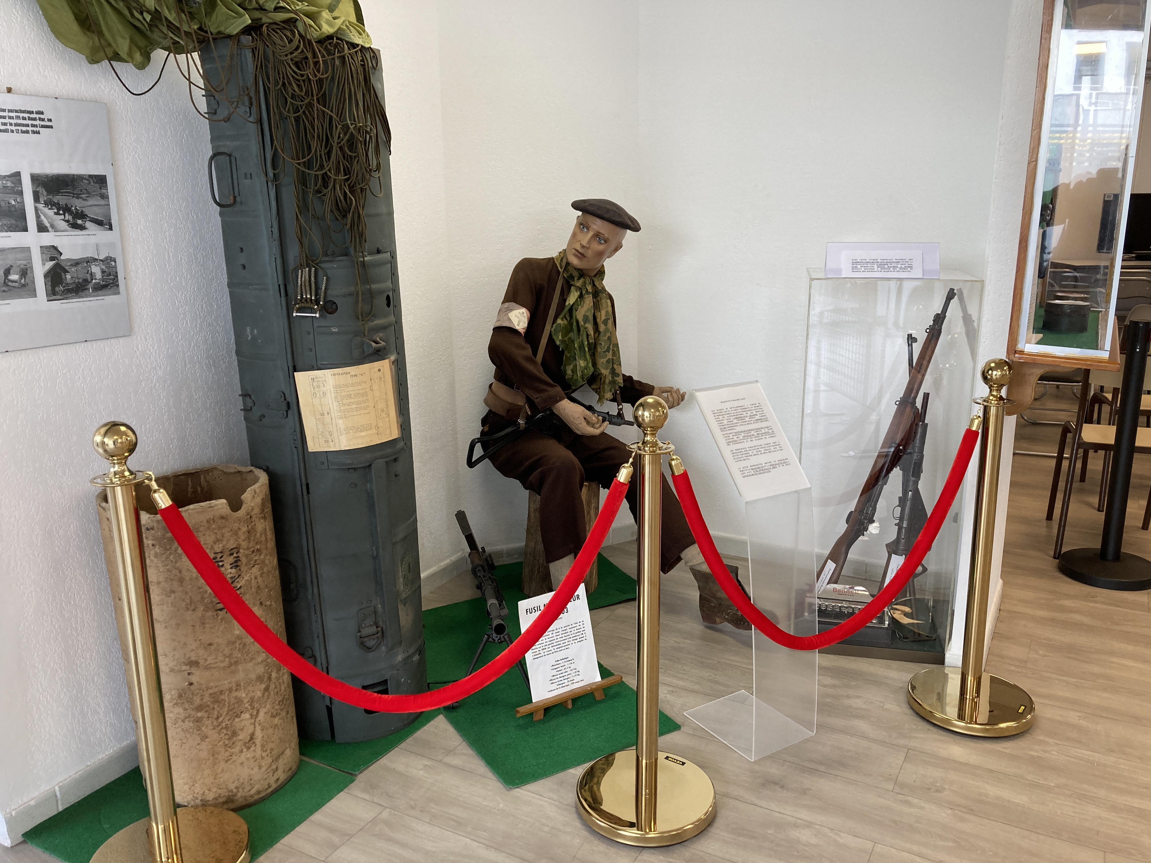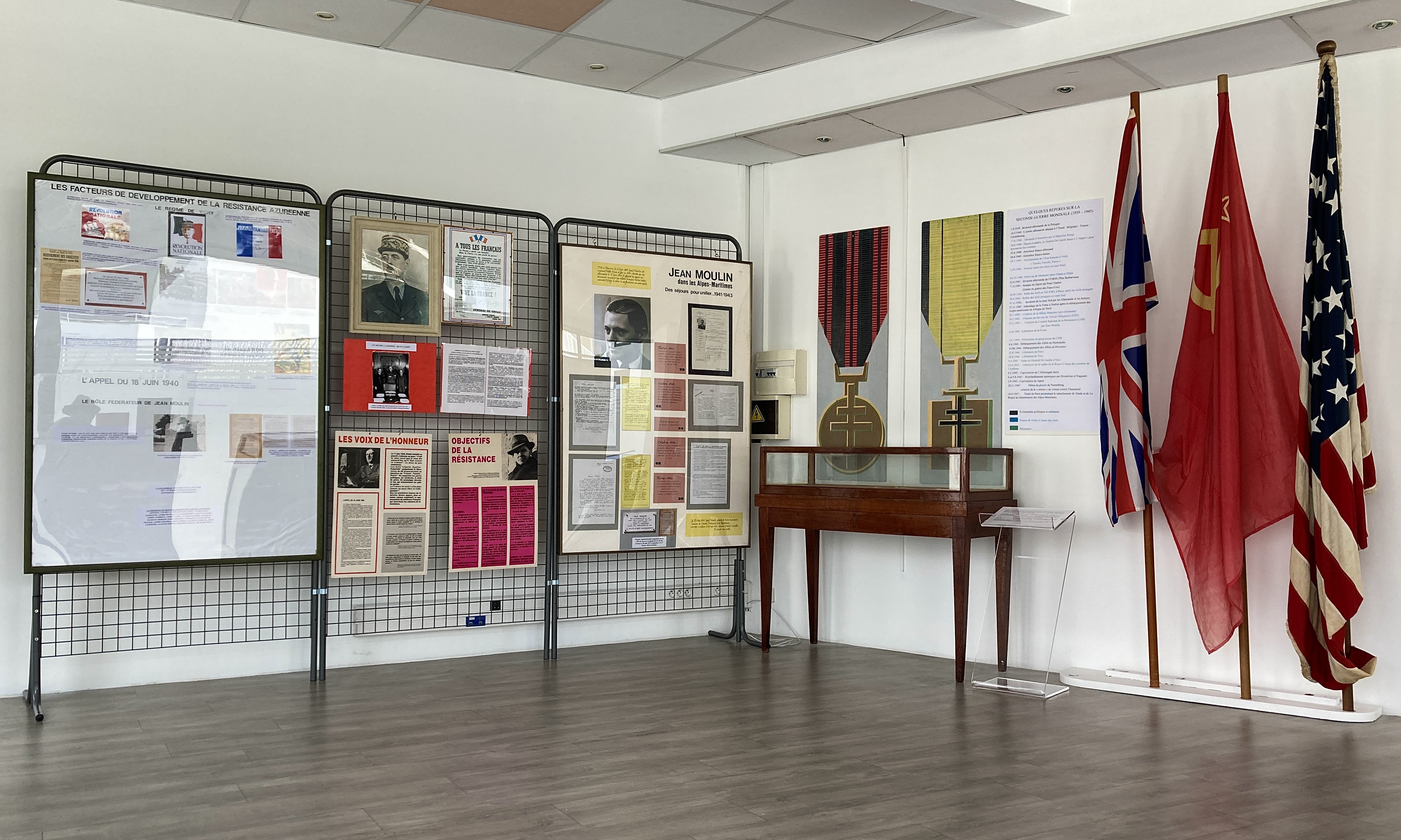 Propone 13 pannelli, 14 vetrine, 5 manichini, una decina di dipinti e sculture su 200 m2 che evocano le azioni, l'influenza e il martirologio della resistenza nelle Alpi Marittime dal 1940 al 1945. Dispone di una biblioteca di 5.200 opere e una fototeca. biblioteca di 800 documenti, talvolta estremamente rari.