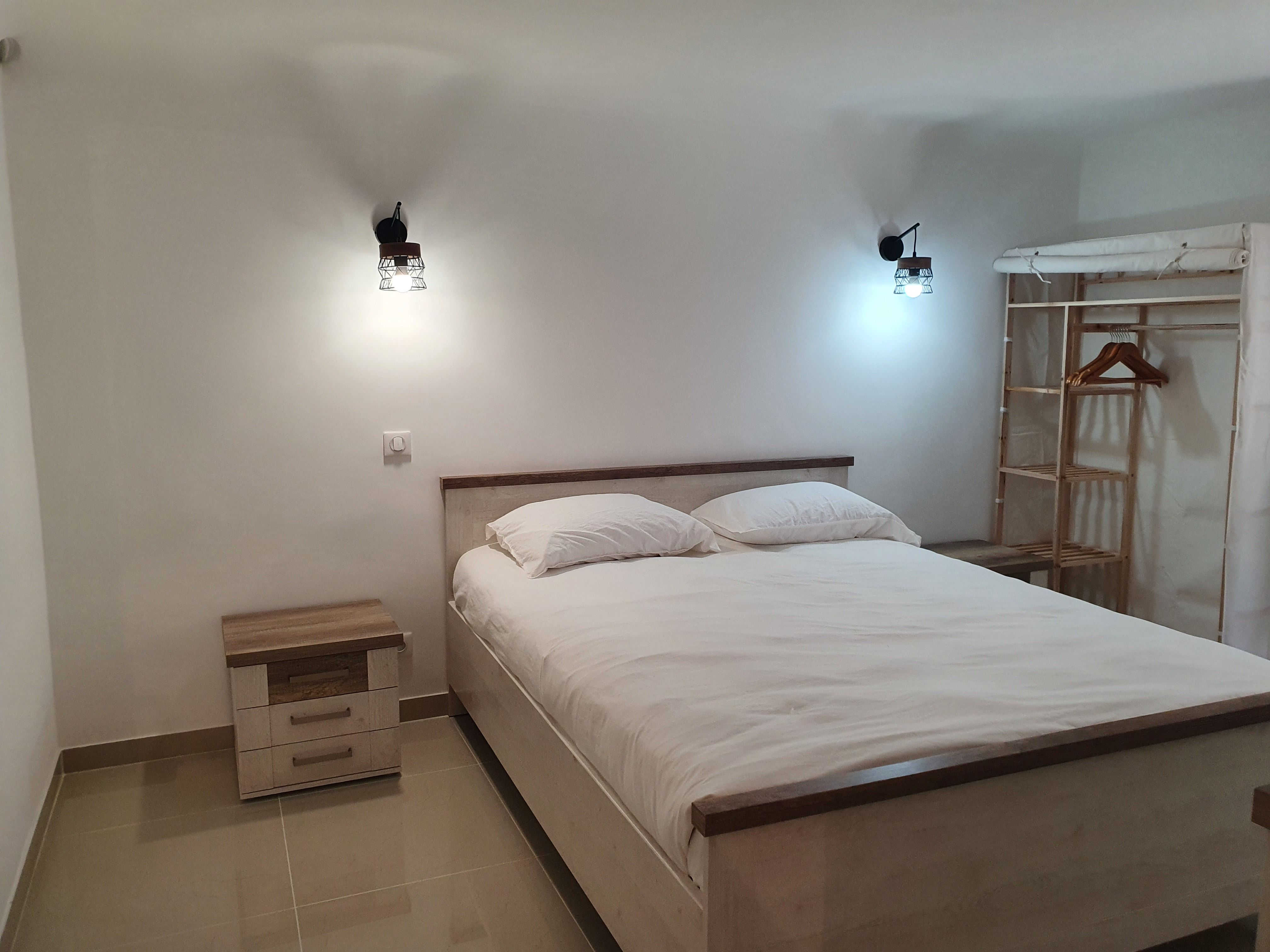 Una seconda camera con 1 letto matrimoniale (160x200). Ogni camera ha un'apertura su un “cortile inglese”. Bagno con doccia, WC. Incluse le spese. Spese di pulizia incluse. Tassa di soggiorno extra. Presenza di un allarme monitorato da remoto.