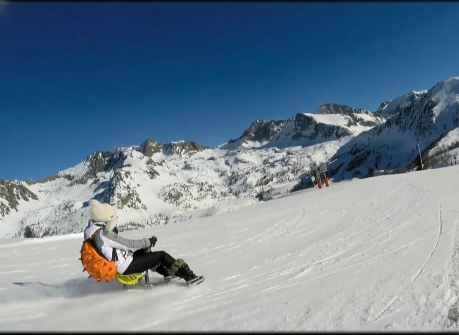 Con un sedile a 20 cm dal suolo, lo Yooner è leggero e facile da manovrare. Vi consentirà di scivolare sulle piste da sci senza bisogno di sci tradizionali o snowboard. Potrete così scoprire le montagne in tutta libertà.