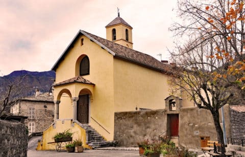 Il suo terreno in pendenza e l’asse disallineato fanno pensare che risalga almeno al XIV secolo. Ospita il capolavoro del villaggio: una statua della Vergine scolpita a Genova, trasportata in nave a Nizza e poi portata nel villaggio in spalla nel 1777.