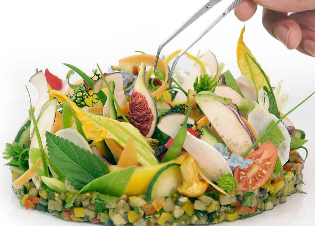 Bruno Cirino e il suo fedele braccio destro José Vidal propongono un menu unico composto interamente da frutta e verdura biologica o coltivata con metodi sostenibili nella regione. Una cucina di verdure raccolte a maturazione ottimale, cucinate con talento, che esalta i sapori tipici della Costa Azzurra, in particolare aglio, olio d’oliva e basilico.