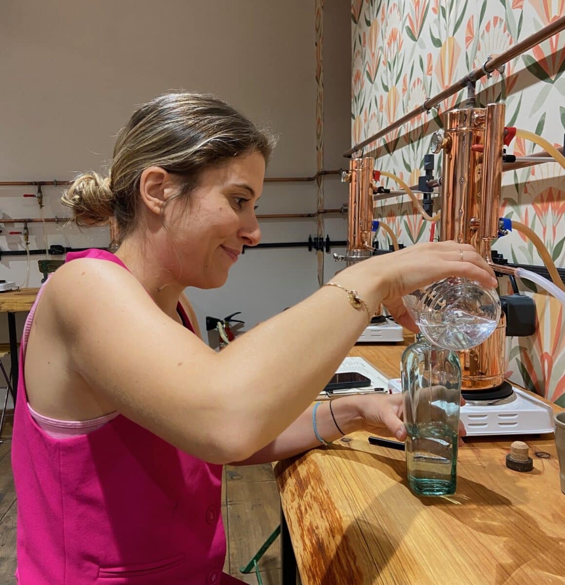 Theo mi ha accolto nella sua distilleria, situata nel quartiere del Porto. Lo spazio è diviso in due parti: una zona negozio dove si possono acquistare distillati di sua produzione, realizzati con ingredienti locali, e una sala sul retro, luminosa, attrezzata con piccoli alambicchi di rame e tutto l’occorrente per creare il gin.
